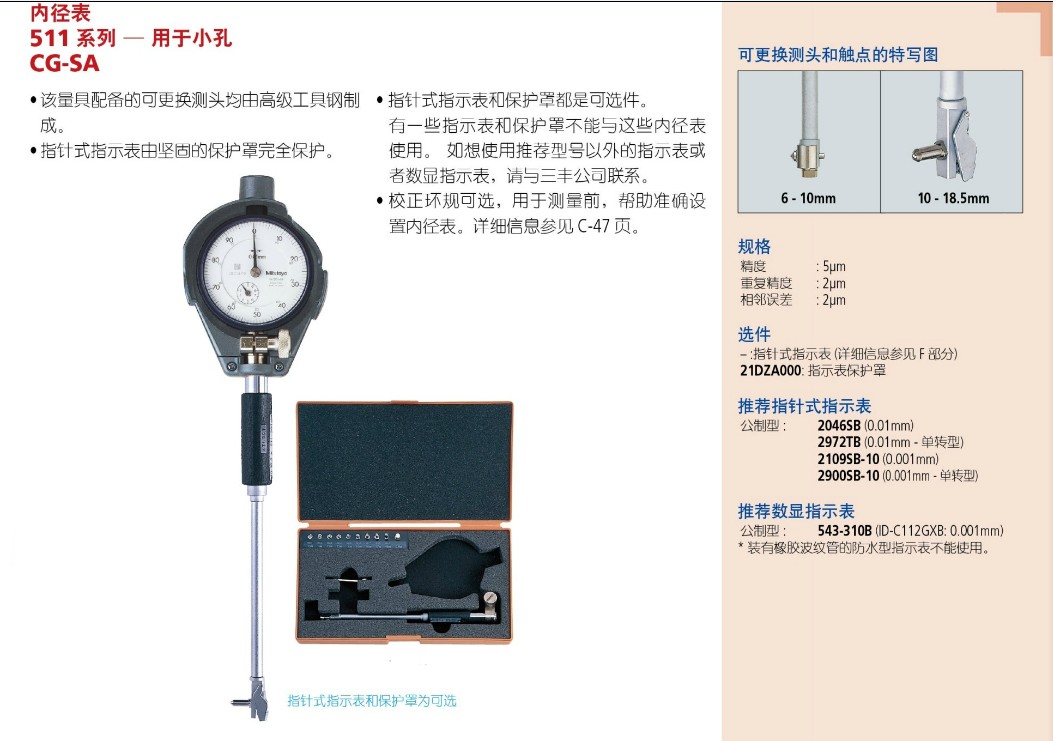 量 程:6-10mm / 10-18.5mm 分辨率:0.01mm / 0.001mm